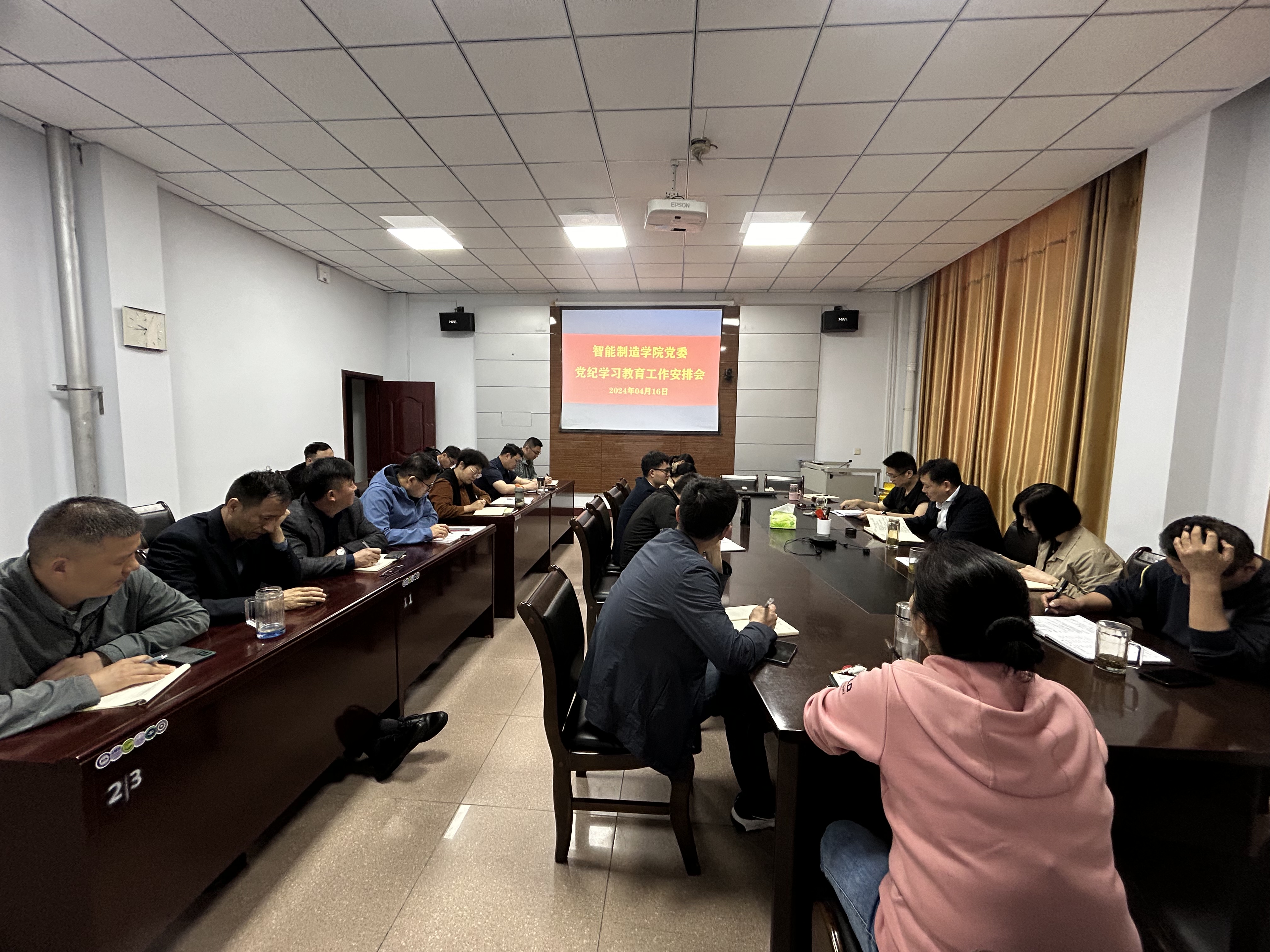 4月16日,智能制造学院召开党委会(扩大)学习会,对开展党纪学习教育进行动员部署。学院班子成员、各科室负责人参加会议。学院党委书记万战争主持会议并部署相关工作。