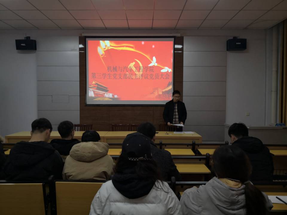 2019年12月10日,机械与汽车工程学院各学生党支部在一楼西侧会议室开展以“不忘初心、牢记使命”为主题的组织生活会及民主评议党员大会,参加党课学习的有全院党员。不忘初心、牢记使命,是加强党的建设的永恒主题,使全体党员、干部的终生课题。我们学院主张组织生活会要坚持真理、修正错误,严肃开展批评和自我批评,以钉子精神抓好整改,确保专题组织生活会高质量新气象。