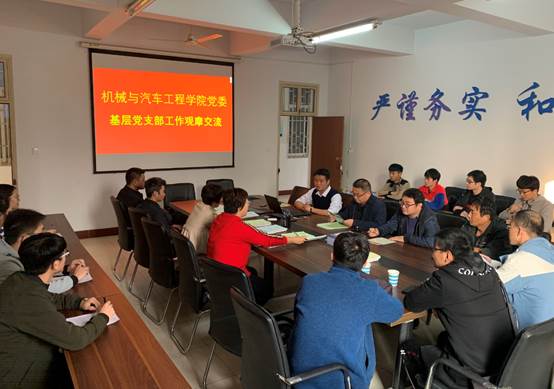 为深入贯彻落实习近平新时代中国特色社会主义思想和党的十九大精神,树立党的一切工作到支部的鲜明导向,全面加强深入推进党支部标准化、规范化建设,创新基层党建工作,提高党支部建设质量,充分发挥我校党支部战斗堡垒作用,机械与汽车工程学院党委于2019年11月5日下午在学院会议室举行了党支部工作观摩交流活动,学院3个教师党支部和5个学生党支部书记、委员分别参加此次活动,活动由学院党委副书记崔贺成同志主持。