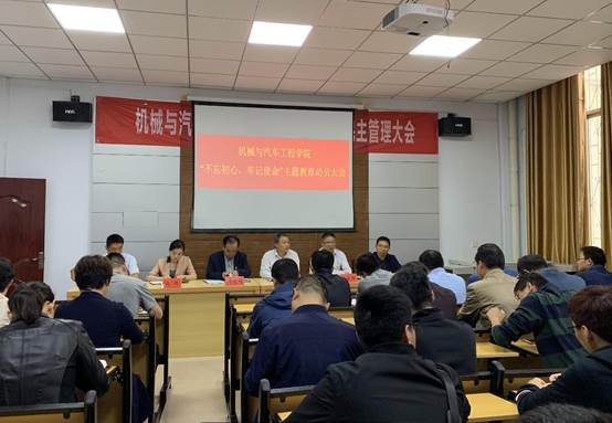 本网讯(通讯员:李悦)2019年9月17号下午,为了深入贯彻落实“牢记使命、不忘初心”的精神,机械与汽车工程学院于6号教学楼1层会议室召开了“不忘初心、牢记使命”的主题教育动员大会。参加会议的成员有校党委委员、统战部部长于远明,学生处副处长赵东江,纪委监察处宣传科副科长张稳以及机械学院全体党员。