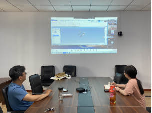 刘总就公司发展情况及技术需求进行了详细介绍,创新团队成员与公司技术人员就智能康养家居设计技术问题与刘总进行了深入交流;2021级机械设计制造及其自动化专业学生曹佳一同学和陈凯同学对某辅助家居结构设计用三维软件进行了初步仿真展示。