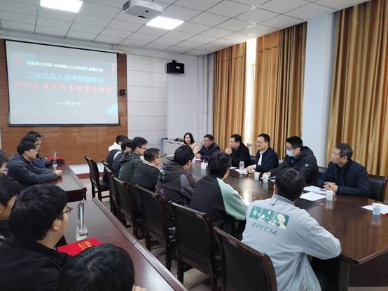 本网讯(特约记者/徐庆栖)3月3日上午,智能制造学院在6号教学楼第一会议室召开2022年度“工业机器人技术研发中心”工作总结暨表彰大会。副校长蔡广宇出席,郑州微力工业机器人有限公司总经理胡亚君作为特邀嘉宾出席,学院领导班子及师生代表共30余人参加会议。