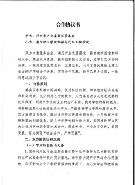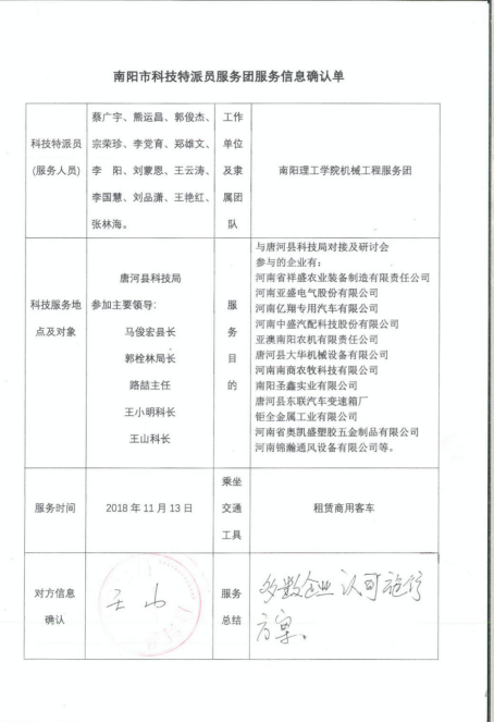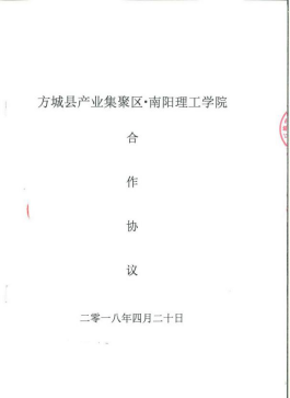 2018年,机械与汽车工程学院与唐河县科技局(南阳市产业科技特派员服务团)、方城县产业聚集区、邓州市产业集聚区管委会签订了合作协议,组建了南阳市科技局科技特派员理工队、方城县产业聚集区科技服务团队、邓州市产业集聚区科技服务团队三个科研服务团队,赴相关产业聚集区企业开展产教融合活动。