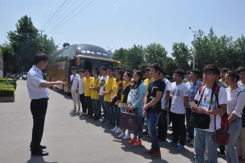 6月29日上午,机械学院45名学生在李冬生、石艳霞老师的带领下乘大巴车前往许昌远东传动轴公司参观考察。历经三个小时车程,顺利到达远东传动轴公司总部,“欢迎南阳理工学院师生到公司参观”的标语在公司的显示屏上滚动出现,带队老师与总公司人事部部长付东安简单接触后,由付部长带领师生考察。