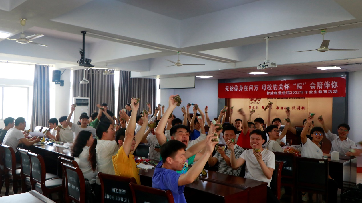 此次活动的开展,使同学们进一步加深了对端午民俗文化的了解,弘扬了爱国爱家爱校的情怀,也再次让同学们感受到智能制造学院大家庭的温暖,记录了2022届毕业生在南工留下的“最后的美好”。一位毕业的同学谈道:这是我最后一次在南工过端午节,学院每年开展的端午包粽子、中秋送月饼、冬至包饺子等活动,使我们感受到了家一般的温暖,十分有意义!”