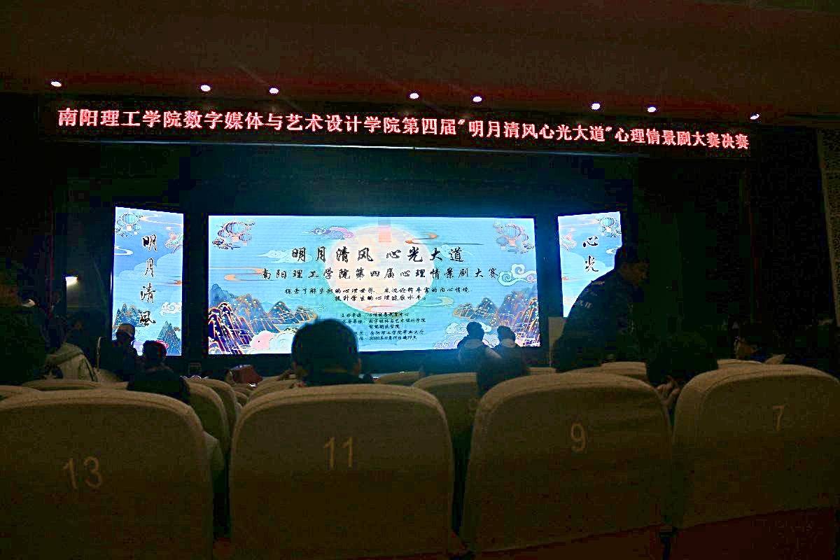 11月19日下午7点,南阳理工学院第四届“明月清风心光大道”心理情景剧大赛在毕业大厅正式举办,本次心理情景剧大赛由心理健康教育中心主办,智能制造学院和数字媒体与艺术设计学院承办,智能制造学院副书记崔贺成出席本次大赛,智能制造学院以及数字媒体与艺术设计学院部分学生观看了本次比赛。