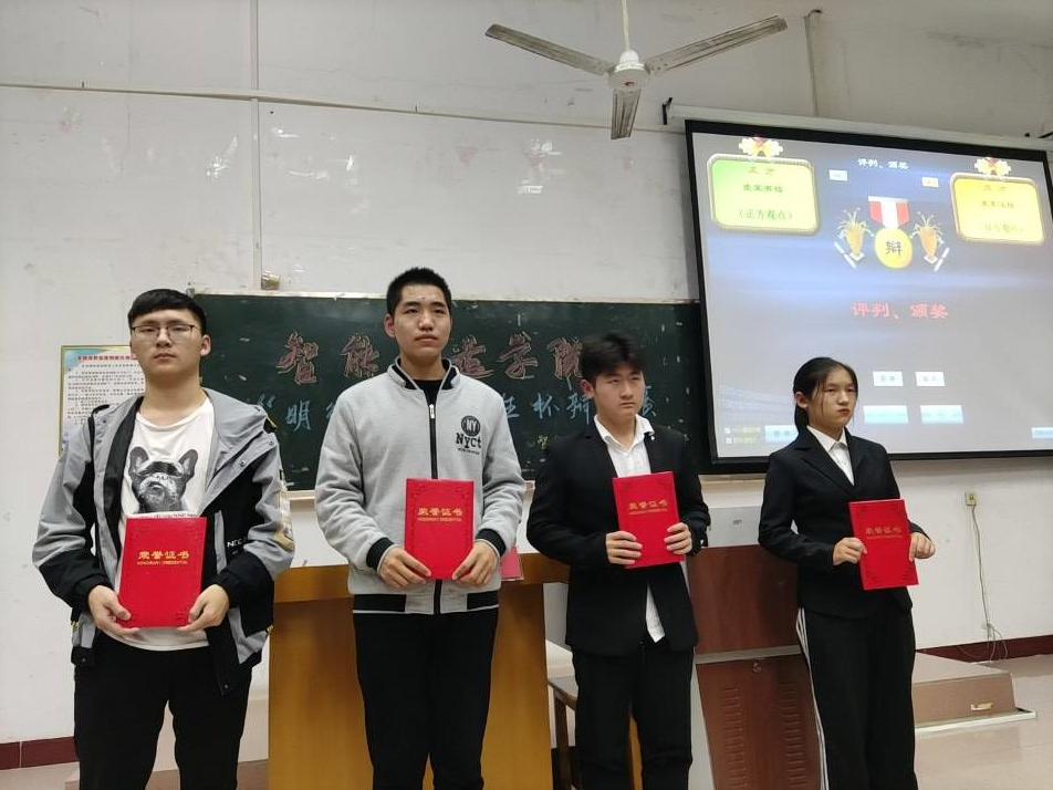 经过激烈的辩论,最终孙马翔、韩郑怿、巫博宇、李牧遥被评为“最佳辩手”,高振国、陈宗昂、周亚伟、饶浩被评为“优秀辩手”。本次比赛还评出最佳团体1个、优秀团体1个。
