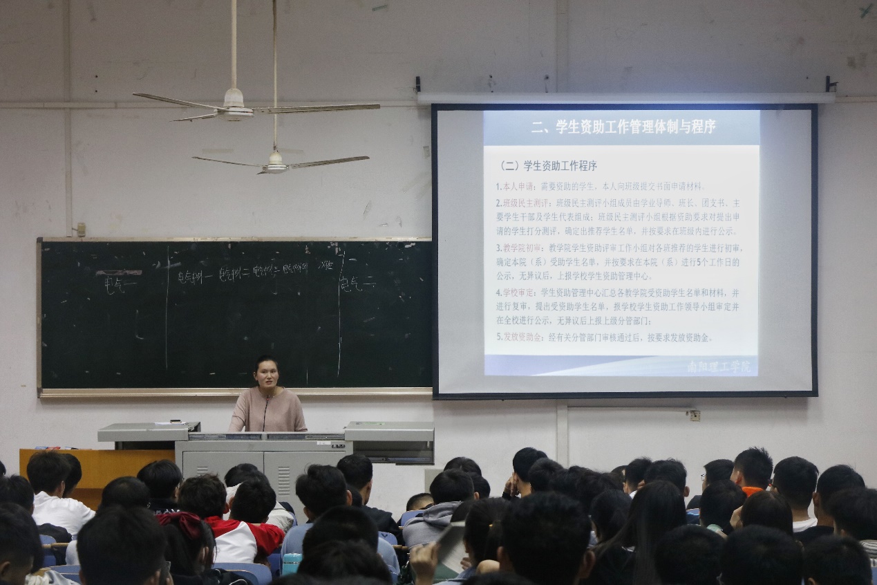 会议伊始,徐老师从资助对象、资助项目、贷款办理、资助育人四个方面系统传达了学校学生资助政策的内涵。随后,徐老师告诫同学们要珍惜国家、学校层面对在校生的经济帮扶和人文关怀,励志感恩,争取早日回报祖国和母校。