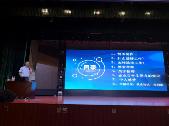随后,通过介绍我院近六年关于毕业生回访和企业走访的经验体会,对比了我院毕业生在长三角、珠三角、内地就业优、劣势,明确了企业对学生素质、能力的要求,分析了毕业生如何才能在就业路上立于不败之地,着重讲解了毕业时学籍档案如何处理,报到证有何作用等与学生切身利益相关的问题。
