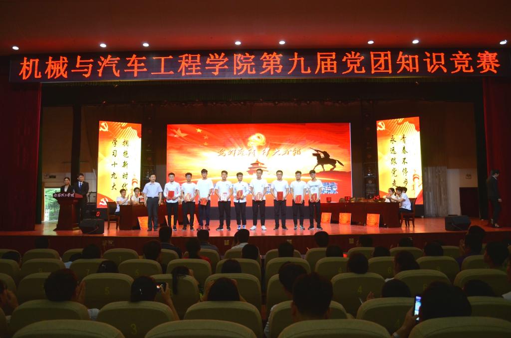 本网讯(通讯员:谢广帅)2018年5月29日下午三点,机械与汽车工程学院第九届党团知识竞赛正式在毕业大厅举办,出席人员有:机械与汽车工程学院院长蔡广宇,副院长熊运昌,党委书记田光辉,党委副书记崔贺成,还有各个年级的辅导员、老师。本次竞赛的主要目的是宣扬党团知识,让同学们对党团知识更加充分的了解与掌握,活跃大学生精神文化生活。