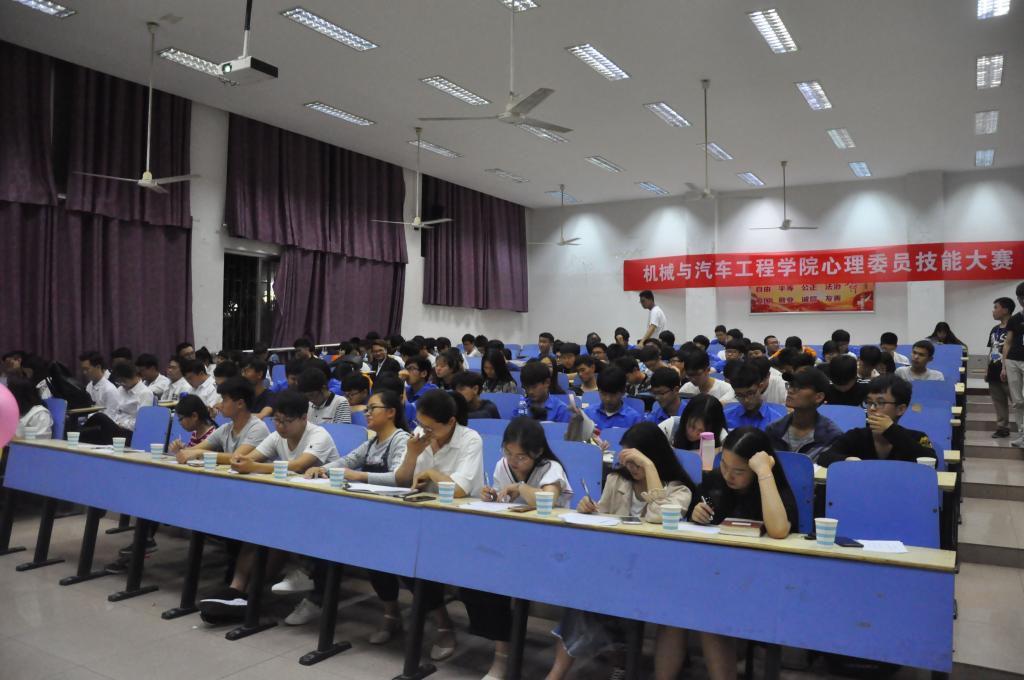 本网讯(通讯员:谢广帅)2018年5月10日晚7点半,机械与汽车工程学院心理委员技能大赛在6#101教室举办, 17级辅导员石艳霞老师出席本次大赛,17级各班级心理委员参加本次比赛。本次技能大赛旨在使全院学生关注心理健康,营造心理健康的氛围,帮助学生更好的认识自我、关怀他人。