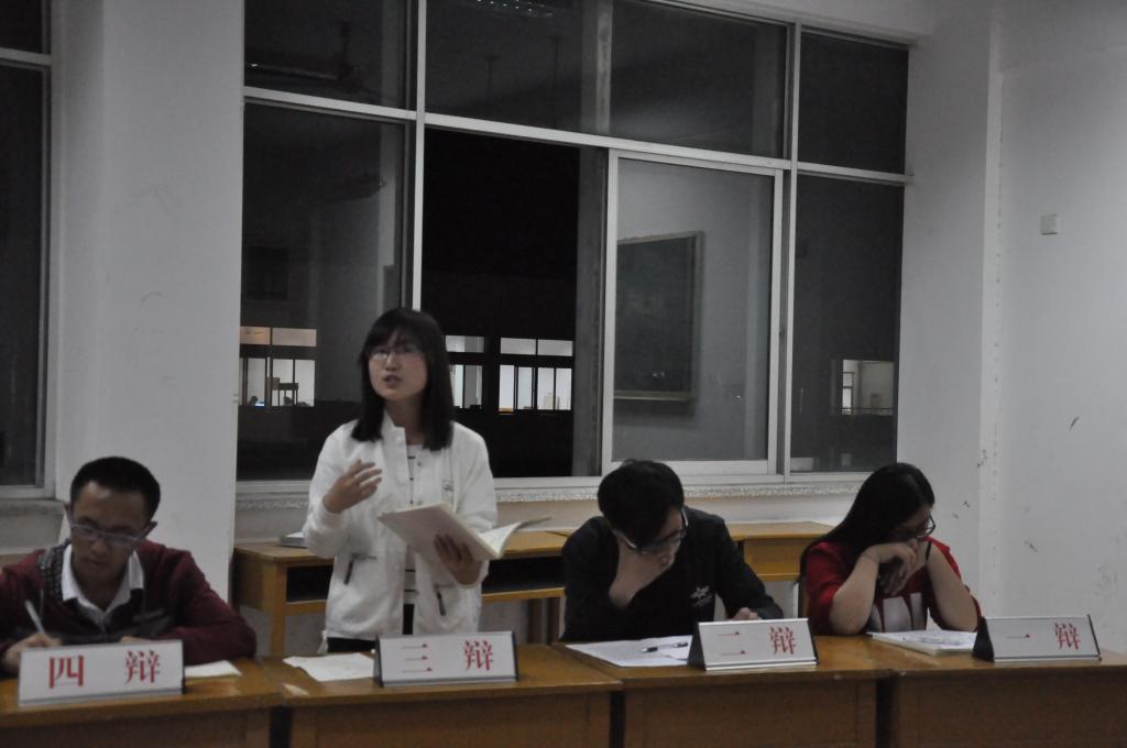 首先主席有请各位辩手做自我介绍,宣布比赛正式开始。本场辩论赛共有四个环节。第一个环节是开篇立论,由双方一辩完成。一辩们用凝练的话语阐述着自己的观点,让我们对辩题有着最为基础的认识。第二个环节是双方二遍进行驳论。他们则主要是根据对方的立论来进行反驳,这是对他们洞察力的极高的考验。第三个环节是双方三辩分别对对方一,二,四辩进行提问。此环节引领着我们对辩题进入更深层次的了解。最后便是人们最为期待的自由辩了。在这个环节中,需要双方四位辩手携力完成,这不仅是他们能力的展现,更是团队和谐默契的最好体现。在这里让我们真正的看到了什么叫唇枪舌战。