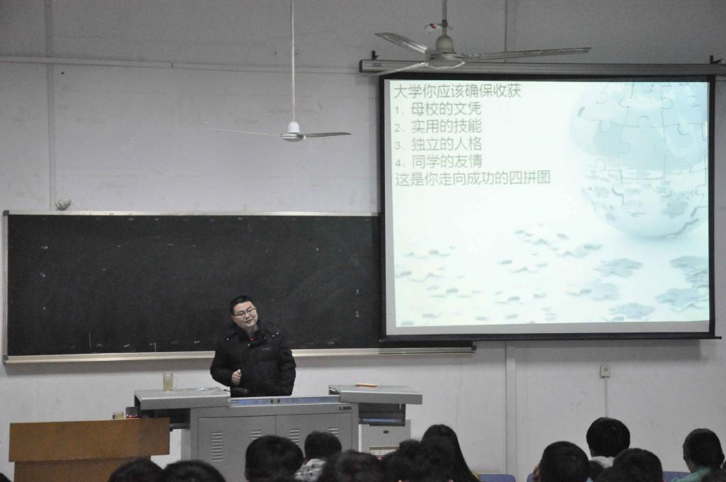 本报讯(通讯员:宁石东)新学期开始,为引导我院学生正确对待大学生活,激发同学们的学习热情。2月28日晚7点,机械与汽车工程学院于6#101进行了以《树优良学风,谱青春旋律》为主题的宣讲会,16级辅导员李冬生16级辅导员李冬生出席并发表长达近一小时的主题演讲。