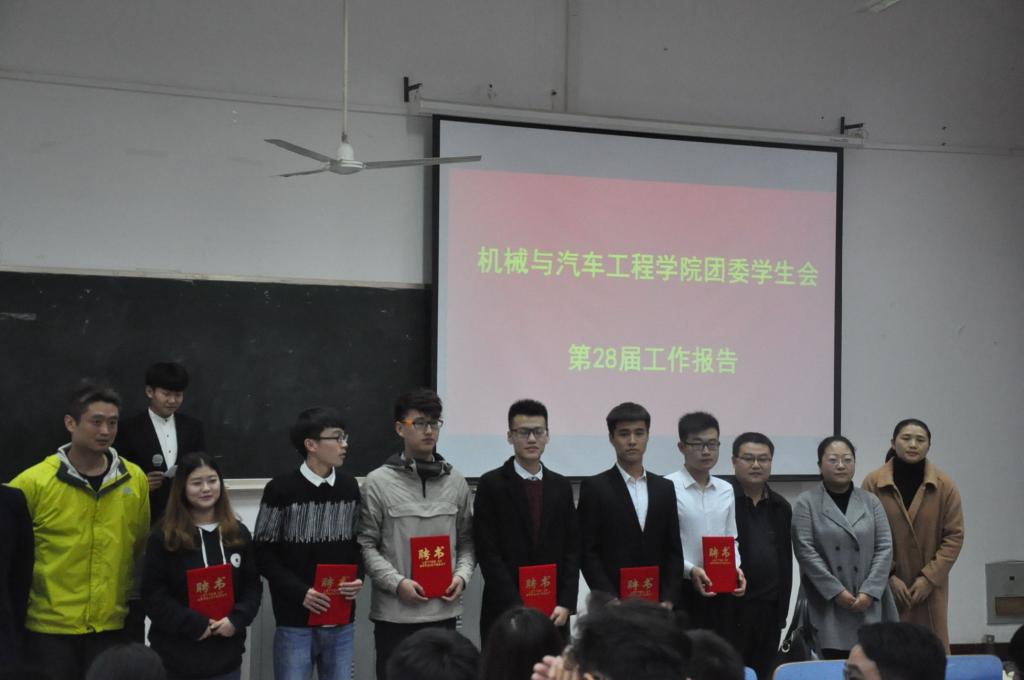 本报讯(通讯员:苏春雷)10月23日下午,机械与汽车工程学院在6#201教室举行了第29届学生会换届大会,学院党委副书记崔贺成及全体辅导员参出席,参加换届大会的还有学生会全体成员和各班班委。