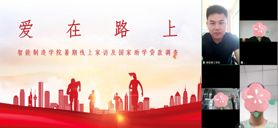 7月2日,智能制造学院学工办通过钉钉开展线上家访,资助专干王文博老师详细讲解了国家助学贷款政策及国家奖助学金的相关政策知识,了解受访学生暑期在家的生活学习情况,掌握学生及其家庭存在的实际困难,听取学生对学校人才培养及资助政策的意见。
