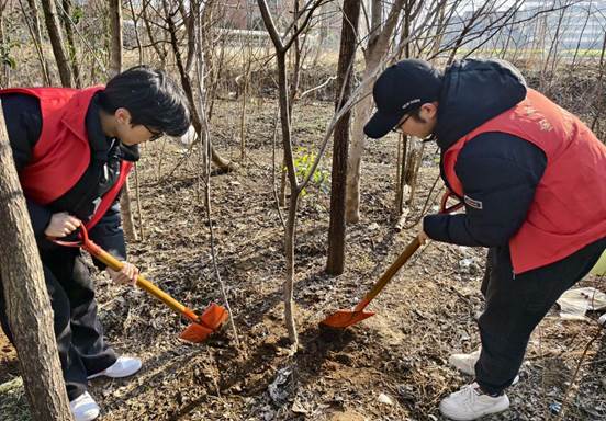 为进一步增强同学们的环保意识,倡导绿色生活方式。3月16日,南阳理工学院大学生雷锋营联合智能制造学院雷锋连和智能制造学院学生会办公室,在校园菜鸟驿站北树林开展 “植绿护绿,共筑美好家园”主题植树节活动,20名志愿者参与其中。