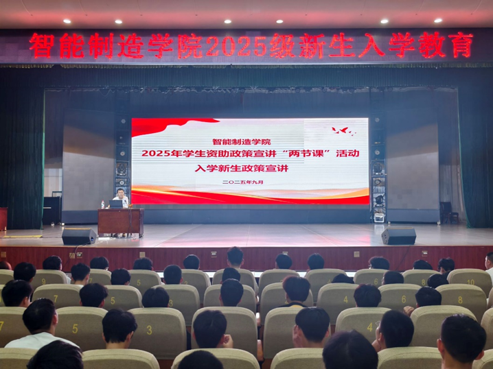 为确保 2025 级新生全面了解国家及学校的学生资助政策,切实解决家庭经济困难学生的后顾之忧,2025年9月12日,智能制造学院在小礼堂举办学生资助政策宣讲 “两节课” 活动。此次活动面向全体 25 级新生,旨在帮助新生们清晰认识各类资助途径,为他们顺利开启大学生活奠定坚实基础。