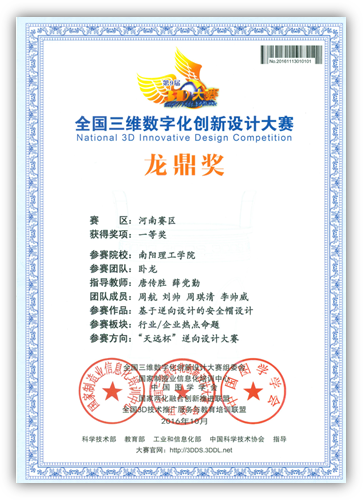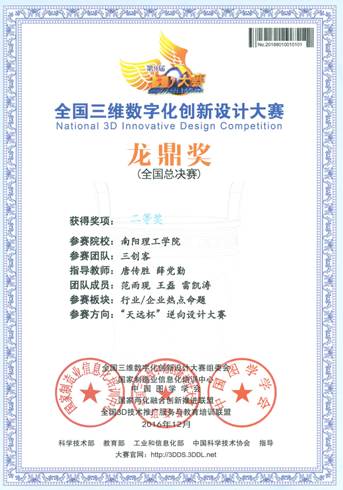 2016全国3D大赛之“天远杯”逆向设计大赛机械学院荣获河南赛区一等奖1项,二等奖一项,代表河南赛区参加12月份在常州举办的第9届全国三维数字化创新设计大赛全国总决赛,并荣获二等奖2项。