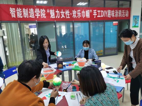 为庆祝第113个“三八”国际劳动妇女节,丰富我院女教职工文化生活,3月7日下午,我院分工会组织全体女教职工在阳光心理广场举办智能制造学院“魅力女性•欢乐巾帼”手工DIY趣味涂鸦活动。