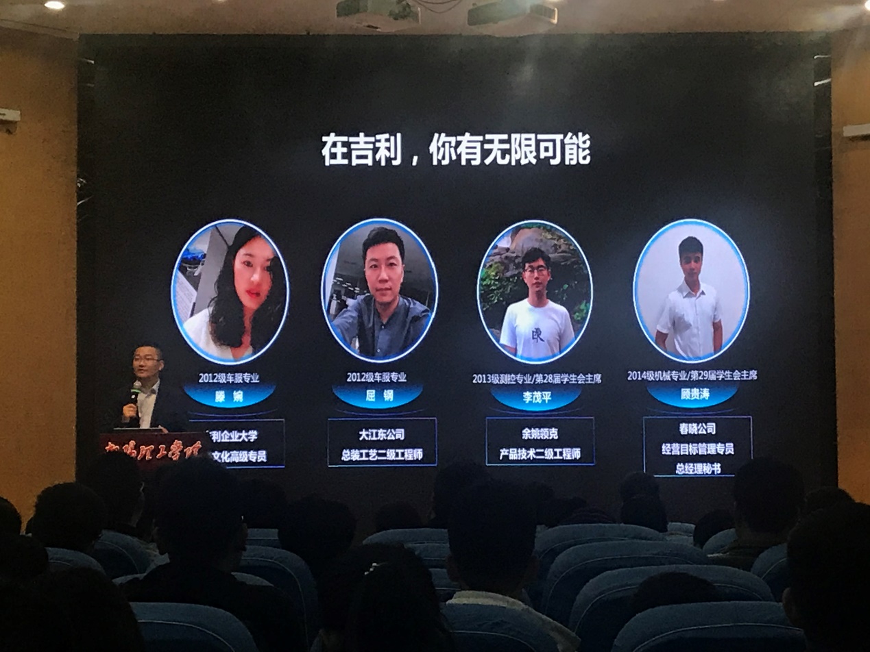 9月21日下午,杰出校友任运通带领吉利汽车集团一行人等应邀来我院开展校企合作交流,并在领创空间二楼报告厅举办了关于就业创业、职业规划、个人成长等内容的专场讲座。