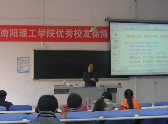 首先徐博以深圳博彩工艺品有限公司的口号:“拼搏进取,共创辉煌”为锲机,切入正题。讲座期间,徐博为大家讲述他从1992年毕业至今取得成就的历程。并总结了自己的人生三部曲:“见识决定胆识,眼界决定境界,态度决定高度”。在现场,当面为大学生解决创业过程中所遇到的问题。最后他就当前创业形势,提出“大企业学规矩,小企业学能力”这一观点。
