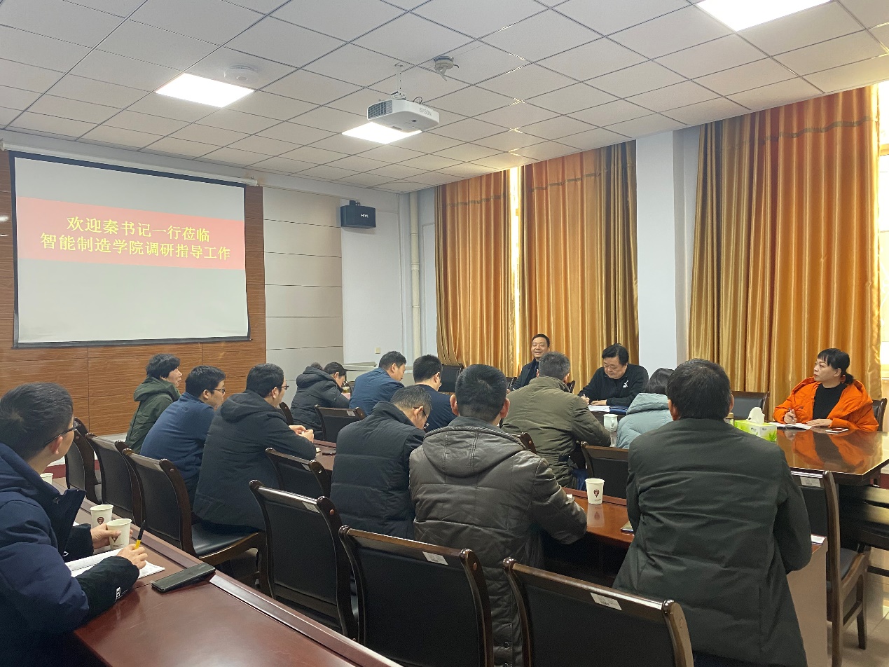 11月24日上午,校党委副书记秦鹏鸣一行到智能制造学院对党建思想工作进行专题调研,校党委委员、党委组织部部长董豪以及党政办相关负责同志陪同调研,智能制造学院领导班子成员和各党支部书记参加调研座谈。
