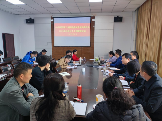 本网讯(特约记者/刘煜)为增强学院党员干部遵规守纪意识、提升反腐倡廉和抵御风险的能力,筑牢拒腐防变思想道德防线,压实压牢管党治党政治责任。4月19日上午,智能制造学院按照《关于集中开展廉政谈话及签订党风廉政建设责任书活动的通知》要求,召开科级以上干部集体廉政谈话会,学院班子成员及科级以上干部参加。