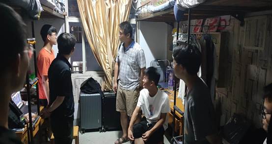 茶话会活动结束后,学院党委副书记崔贺成带领学工办全体辅导员走进新生宿舍,为同学们送去了中秋节诚挚的祝福,并与同学们亲切交谈,询问同学们的日常生活,关心外地同学在异地求学是否习惯,嘱咐同学们要照顾好自己,希望同学们尽快适应大学生活,在南工发掘人生价值。