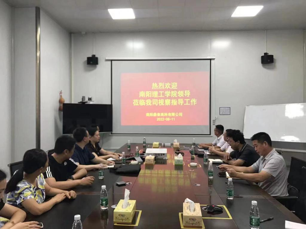 县科工信局局长彭振伟、副局长王国洋以及鼎泰高科有限公司张经理等热情接待了来访教师一行。在实地考察公司生产车间及产品过程中,对新野县以及鼎泰高科的发展历程、业务范围、战略规划做了详细介绍。随后双方就企业所需的岗位、人才素质以及科研等方面进行了深入交流。