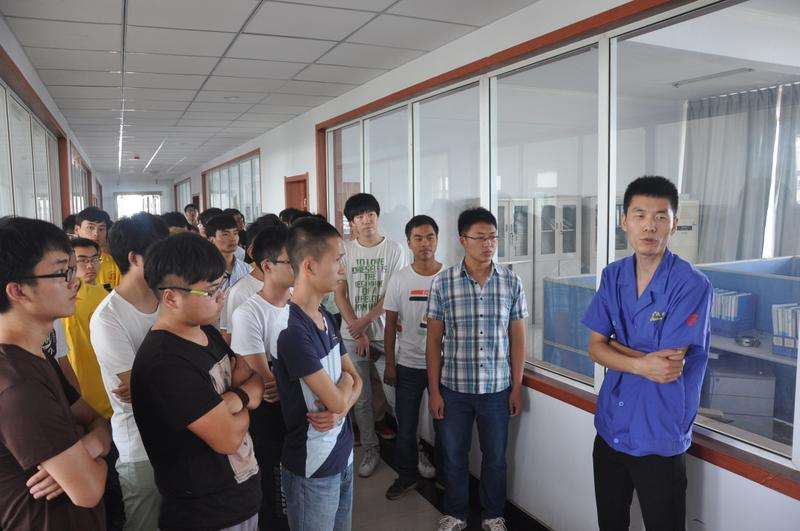 上午付部长冒着32摄氏度的高温带领师生参观了研发中心、展示中心。在研发中心,研发中心主任向同学们介绍了公司新研发的产品,并告知同学们研发时用的基本制图软件。通过对研发中心的参观,同学们初步了解了研发人员的工作环境,并表示回校后一定认真再学习CAD制图软件。在展示中心,付部长向同学们介绍了公司的产品--------轻型车传动轴、中型车传动轴、工程车传动轴、皮卡suv传动轴以及传动轴的零部件。在展示中心还了解到,远东传动在全国设立了46个营销服务区域和网点,涵盖全国28个省市区,为近百家主机制造商进行配套,并成为其中众多客户的首选供应商。拥有北汽集团、北方奔驰、陕西重汽、东风柳汽、江淮汽车、大运汽车、安徽华菱、江西江铃、长安汽车、长城汽车、郑州日产、宇通集团、上汽通用五菱、徐州重型、广西柳工、厦工股份、山东临工、三一集团、中联重科、三江航天、泰安航天等一大批知名客户。连年被评为全国百佳汽车零部件供应商,被陆海空三军评为“60周年国庆首都阅兵装备保障优秀供应商”等称号。