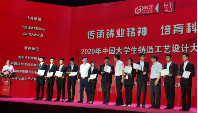 2020年9月4日7日,“永冠杯”第十一届中国大学生铸造工艺设计大赛决赛(即现场答辩阶段)在辽宁沈阳友谊宾馆进行。我校赵亚忠和彭银利老师带队参加决赛,经过激烈角逐,我校代表队决赛成绩为第14名,并成功斩获一等奖,填补了河南省此项赛事一等奖的空白。
