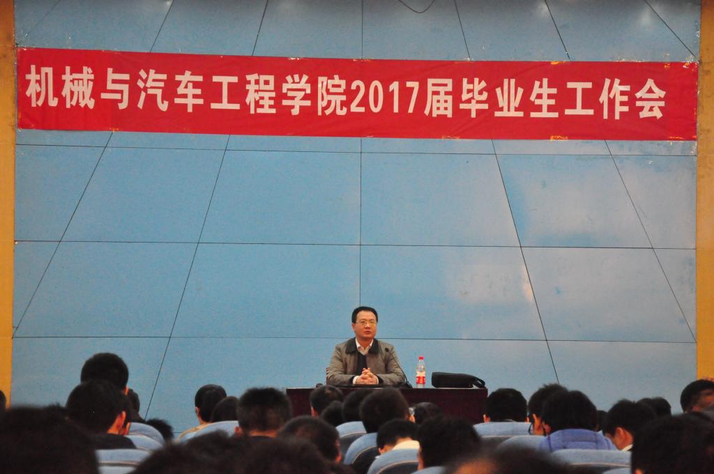 12月3日,机械与汽车工程学院在领创空间二楼报告厅举行2017届毕业生工作会议,机械与汽车工程学院领导班子成员及全体辅导员参加,会议由学院党委书记田光辉主持,本次会议共有三项议程:分别是2017届毕业设计(论文)的相关要求、毕业生资格审查相关要求、就业讲座。