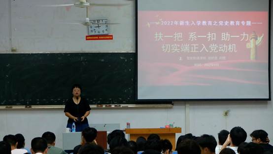 刘煜老师的讲解内容包括入党流程的讲解和党支部的各种活动,让新生对学生入党流程有了基本的认识,鼓励刚刚步入大学的新同学们努力上进,成为新时代的有志有为青年,同时积极向党组织靠拢,为国家贡献自己的力量。