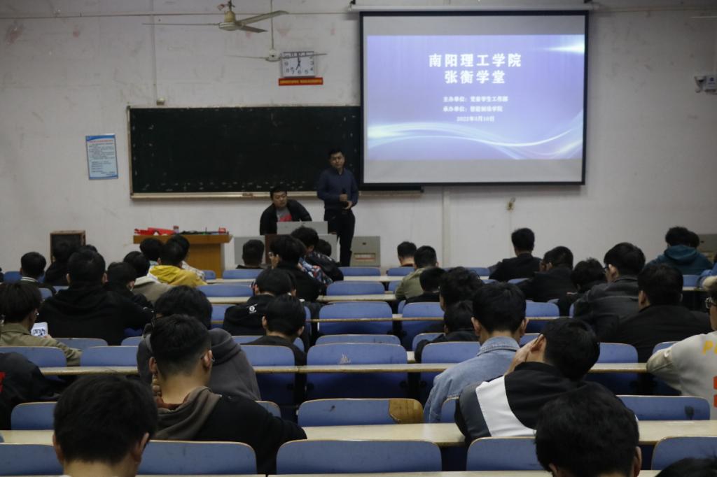本网讯(特约记者/汤乐)3月10日晚,由校党委学生工作部主办、智能制造学院承办的南阳理工学院“张衡学堂”在六阶101教室开讲了。学校招生就业处郭勇老师、程涛老师和优秀创业校友汪孜运、许浩主讲,160余名师生参加此次报告会。