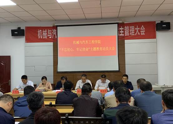 本网讯(通讯员:李悦)2019年9月17号下午,为了深入贯彻落实“牢记使命、不忘初心”的精神,机械与汽车工程学院于6号教学楼1层会议室召开了“不忘初心、牢记使命”的主题教育动员大会。参加会议的成员有校党委委员、统战部部长于远明,学生处副处长赵东江,纪委监察处宣传科副科长张稳以及机械学院全体党员。