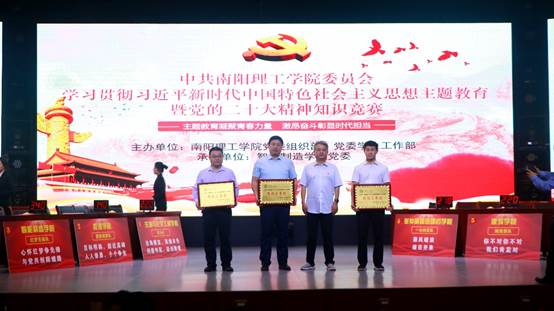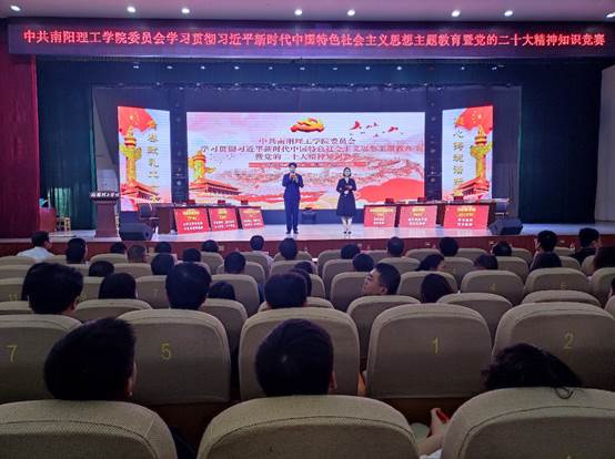 本网讯(特约记者/李媛)为深入学习贯彻党的二十大精神,从党史中汲取奋进力量,努力营造昂扬向上、团结奋进的学习氛围,6月7日下午,由南阳理工学院党委组织部、党委学生工作部主办,智能制造学院承办的“学习贯彻习近平新时代中国特色社会主义思想主题教育暨党的二十大精神知识竞赛”在校礼堂如期举办。