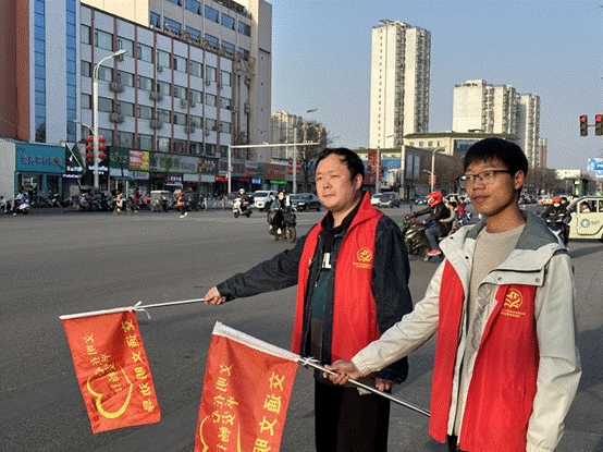 “现在是红灯,请您遵守交规、等候通行”“请您佩戴好安全头盔”“请走人行横道,不要横穿马路”......身着红马甲的交通志愿者在人流车流密集的学校北大门协助学校保卫处对过往行人及非机动车闯红灯、逆行、电动车驾驶人未佩戴头盔等不文明行为进行文明提醒和劝导。志愿者的规范引导和文明服务成为学校门口的一道美丽风景。