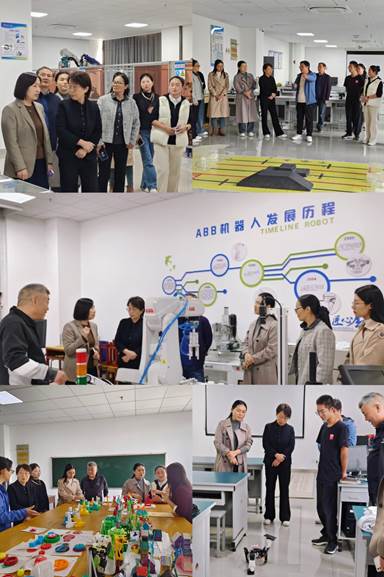 在智能制造学院院长翟天嵩和综合实验实训中心主任李国强的陪同下,杨校长一行参观了学院的核心教学科研设施,包括工业机器人焊接实验室、ROS智能移动机器人实验室、增材制造实验室、机器人创新实验室、数控实验室以及智能生产线实验室。他们亲身体验了3D打印、焊接机器人、码垛机器人、AGV小车、数控加工中心及智能生产线等前沿科技设备。现代化的生产线、精密的机械设备以及前沿的科技应用,令杨校长和老师们赞叹不已。