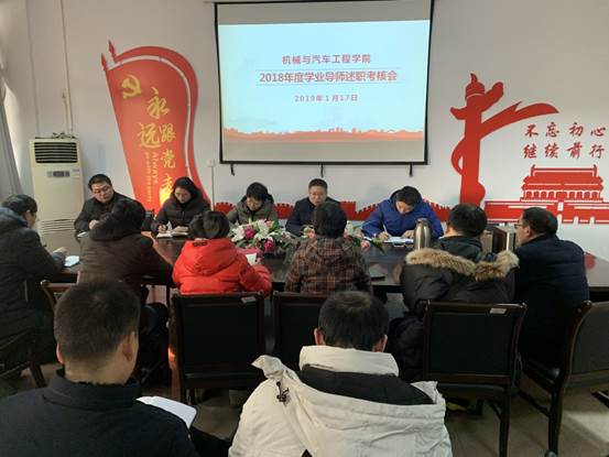 1月17日,机械与汽车工程学院在学院会议室开展学业导师述职、考评会,考评会以学院书记田光辉、副书记崔贺成和学工队伍四位辅导员为评审成员,会议由田光辉主持。